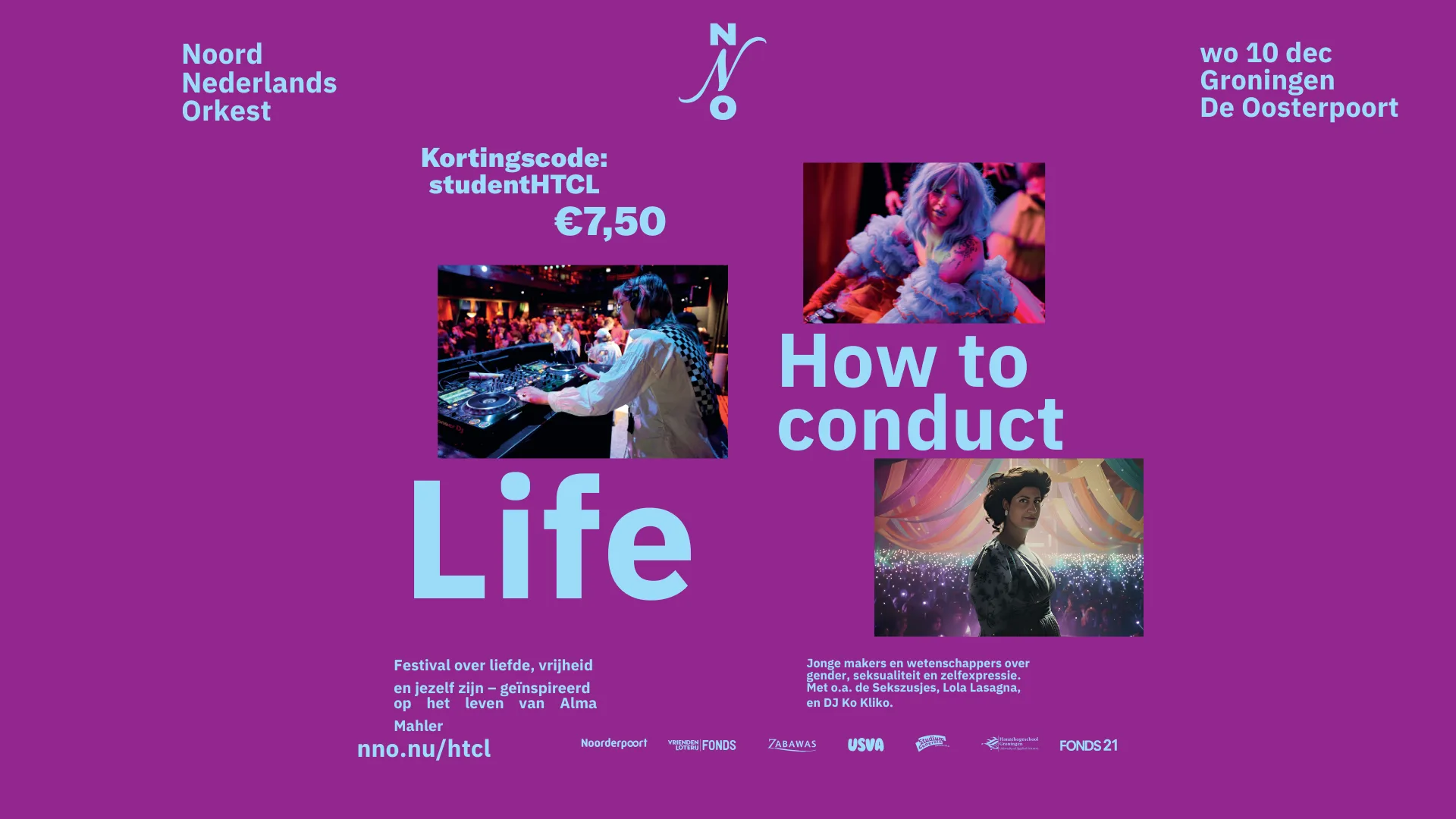 How to Conduct Life wordt mede mogelijk gemaakt door: Fonds21, Noorderpoort College, Prins Claus Conservatorium, Studium Generale, Usva Cultureel Studentencentrum, VriendenLoterij Fonds