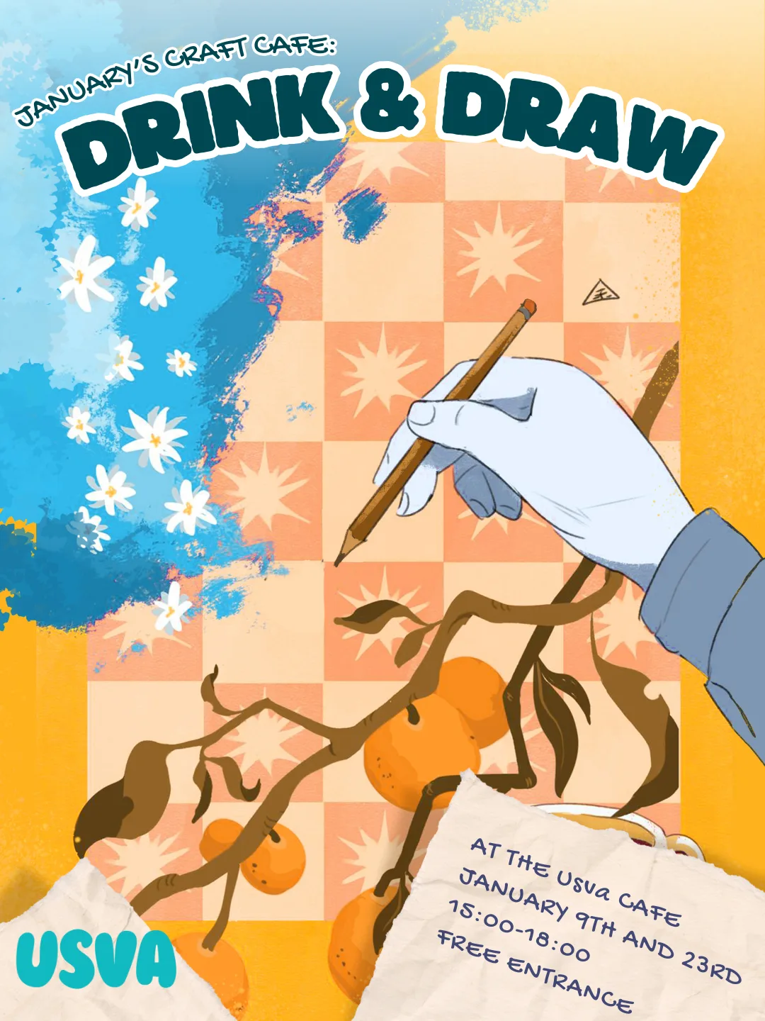 The theme for the January craft cafes is drink and draw! Come to the Usva café to get creative on the 19th or 23rd. You can come together with friends or join a table and meet new artists.